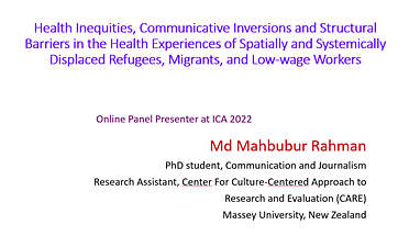 Global South' at the preconference (26-27 May 2021) of ICA-2021 organized by CARE (Center for Culture-Centered Approach to Research and Evaluation), Massey University.